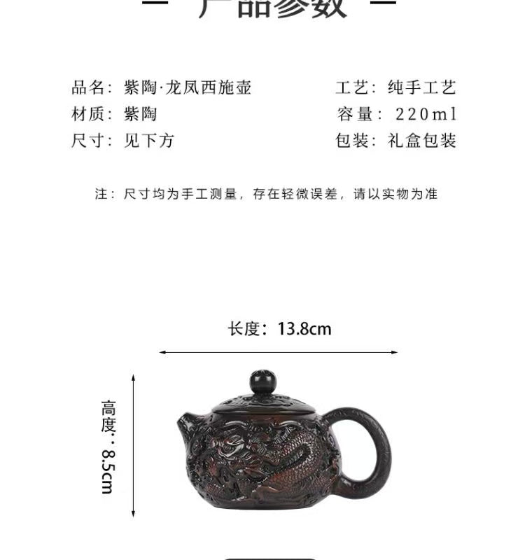 【8號】紫陶龍鳳西施壺,可提,可旋轉,可鳳鳴,手作精工